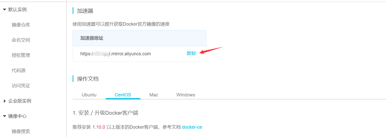 阿里云的镜像加速服务获取地址是 https://cr.console.aliyun.com/cn-hangzhou/instances/mirrors